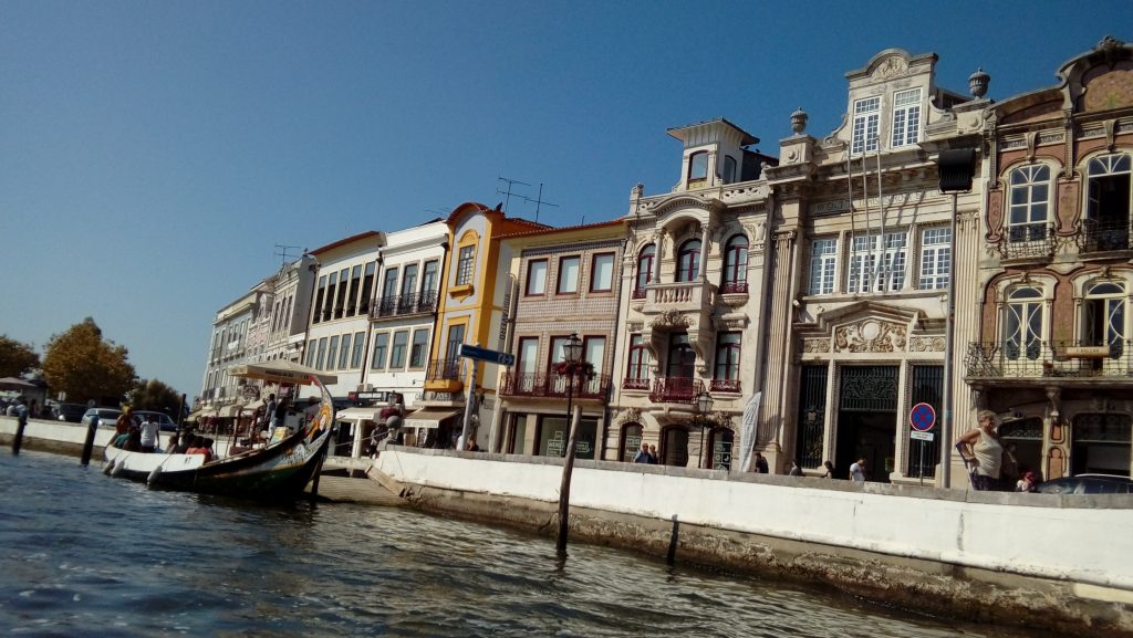 Então, lá fomos nós! Pagamos 10 euros por adulto para embarcar num viagem colorida, divertida e cultural. De dentro dos barcos, dá para ver o centro histórico, as construções em estilo Art Nouveau, prédios centenários de múltiplas cores que alegram a paisagem, pontes sobre os canais, dá para ver as pirâmides de sal branco das salinas… é de encher os olhos!