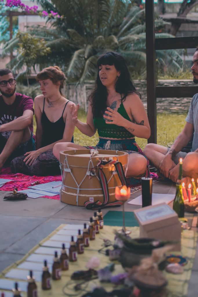 E esse círculo de mulheres traz isso de volta, um resgate do nosso poder criativo, acolhimento, da nossa essência. A mulher tem que sentir esse chamado e estar disposta a se encontrar. Não é só sagrado feminino, não é só girar saia com florzinha na cabeça na volta da fogueira. É também se enxergar na sombra da outra. É muito transformador. Eu acredito no empoderamento que isso traz pra nossa vida e que o sagrado feminino anda de mãos dadas com o feminismo. Não adianta fazer ritual pra natureza e lá fora xingar a outra. Temos que estar na rua, na luta também. Indo atrás dos nossos direitos e fazendo as coisas acontecerem pra que a gente possa se libertar cada vez mais…