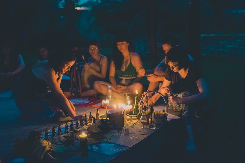O ritual de florais é um círculo onde, diferente de consultar um terapeuta e ele prescrever um floral a partir do que você falou, eles é que te escolhem. Isso foi uma percepção que a Ana teve, porque ela começou a testar os florais e percebeu que as plantas eram mais sábias do que ela podia imaginar. Chegava uma paciente e dizia que tinha um problema, e uma planta começava a nascer no quintal, ela pesquisava sobre a planta e via que era aquilo que a pessoa precisava. Ela fez cartas para cada planta e elas passam a mensagem. O ritual consiste em você se conectar com essas medicinas e recebe-las magicamente. É surpreendente, um ritual muito bonito. Quem faz um tratamento contínuo consegue ver a preparação de um floral para outro, são muito intensos, densos, e podem vir muito doces, ou trabalhando coisas mais profundas e pesadas. É um caminho de autoconhecimento bonito, que eu fico muito feliz de ser guardiã.