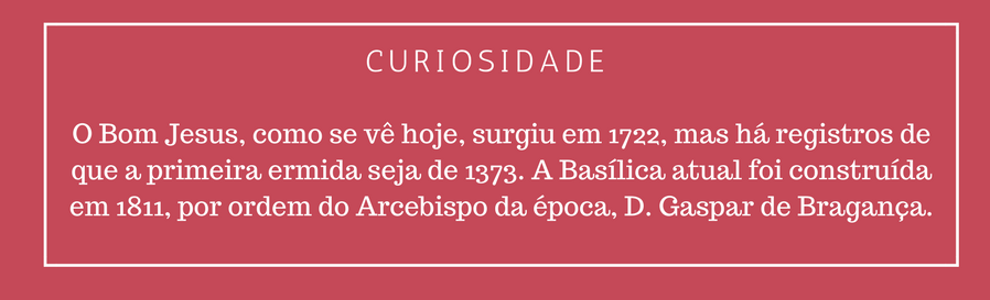 O Santuário é um convite à contemplação. Um lugar inspirador, visitado pelos turistas que vêm a Braga e muito frequentado pelos moradores daqui. Gente que vem fazer exercício físico, rezar, ler, relaxar em meio a belas paisagens ou se divertir. Atrás da Basílica, há um espaço com lago, parque infantil e ainda restaurantes e hotéis. Na época que antecede a Páscoa, o local recebe ainda mais visitantes, já que ocorrem procissões no período da Quaresma: 17 capelas distribuídas entre a escadaria e o Largo do Santuário representam a Via-Sacra.