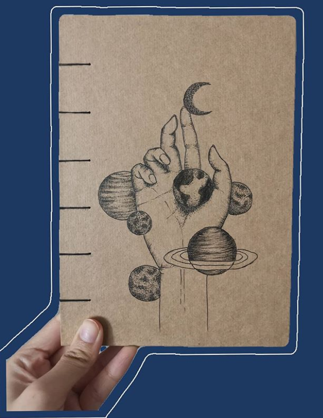 Desde a capa, que é feita com traços particulares de acordo com a escolha de cada cliente,  até o tipo de folhas que está na parte interna do caderno.