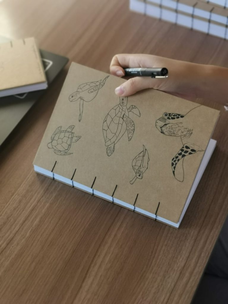 –  Estávamos bem desanimadas por causa da pandemia e resolvemos a aprender a fazer algo novo.  Escolhemos fazer os cadernos porque não encontrávamos cadernos que queríamos no mercado, com preço razoável e gramatura boa para desenharmos. Procuramos na internet tutoriais e começamos a fazer  – conta a irmã mais velha.