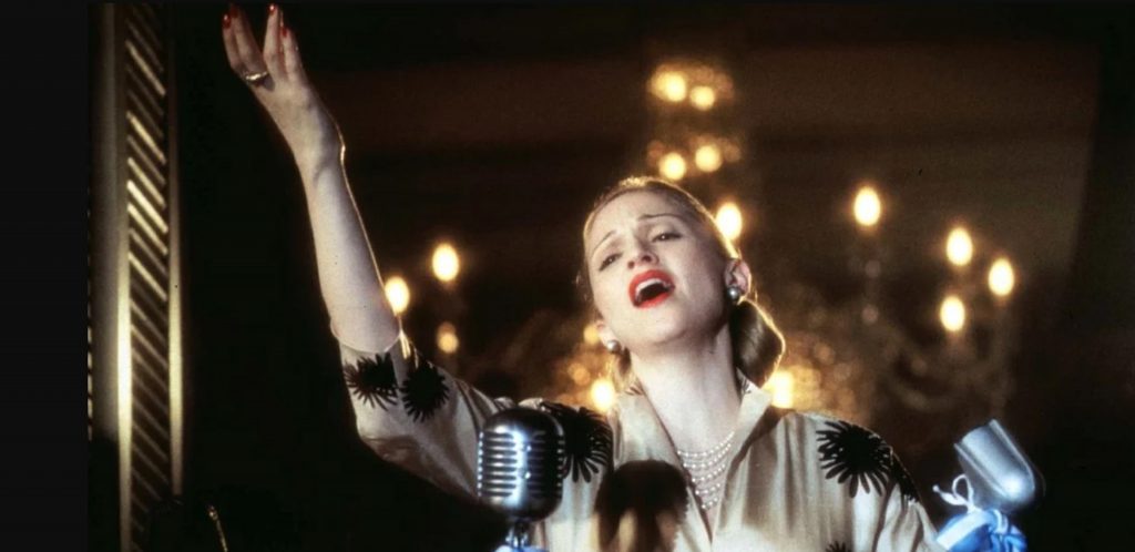 Com o lançamento do filme Evita, de Alan Parker, em 1996, o ícone argentino ganhou, mais uma vez, projeção mundial. Porém, despertou a ira dos hermanos. Isso porque trazia a polêmica Madonna (foto) como protagonista. Muitos defendiam que era um enorme desrespeito com uma figura tida quase como uma santa, ser interpretada pela cantora norte-americana. Além disso, muitos criticaram o roteiro do musical, que promoveu um encontro de Evita e Che Guevara que, de fato, nunca existiu.