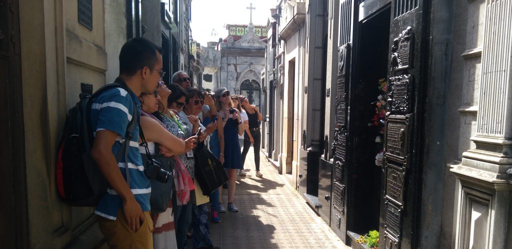 Uma visita guiada (que pode ser feita de hora em hora, em inglês ou espanhol e, sem pagar nada, todos os dias, das 7h30min às 17h30min) percorre os túmulos mais emblemáticos do cemitério. De ex-presidentes até ganhador de prêmio Nobel. A última parada é o túmulo mais famoso, mas ironicamente, a tumba onde encontram-se os restos mortais de Evita, é também a mais simples. Aliás, embora seja muito fotografado, acaba decepcionando muita gente.