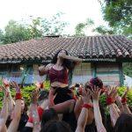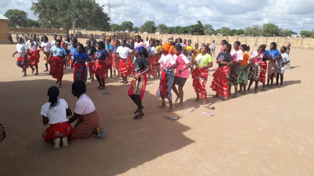 Crianças recepcionando os voluntários com música e dança. Foto: Lucas Amorim