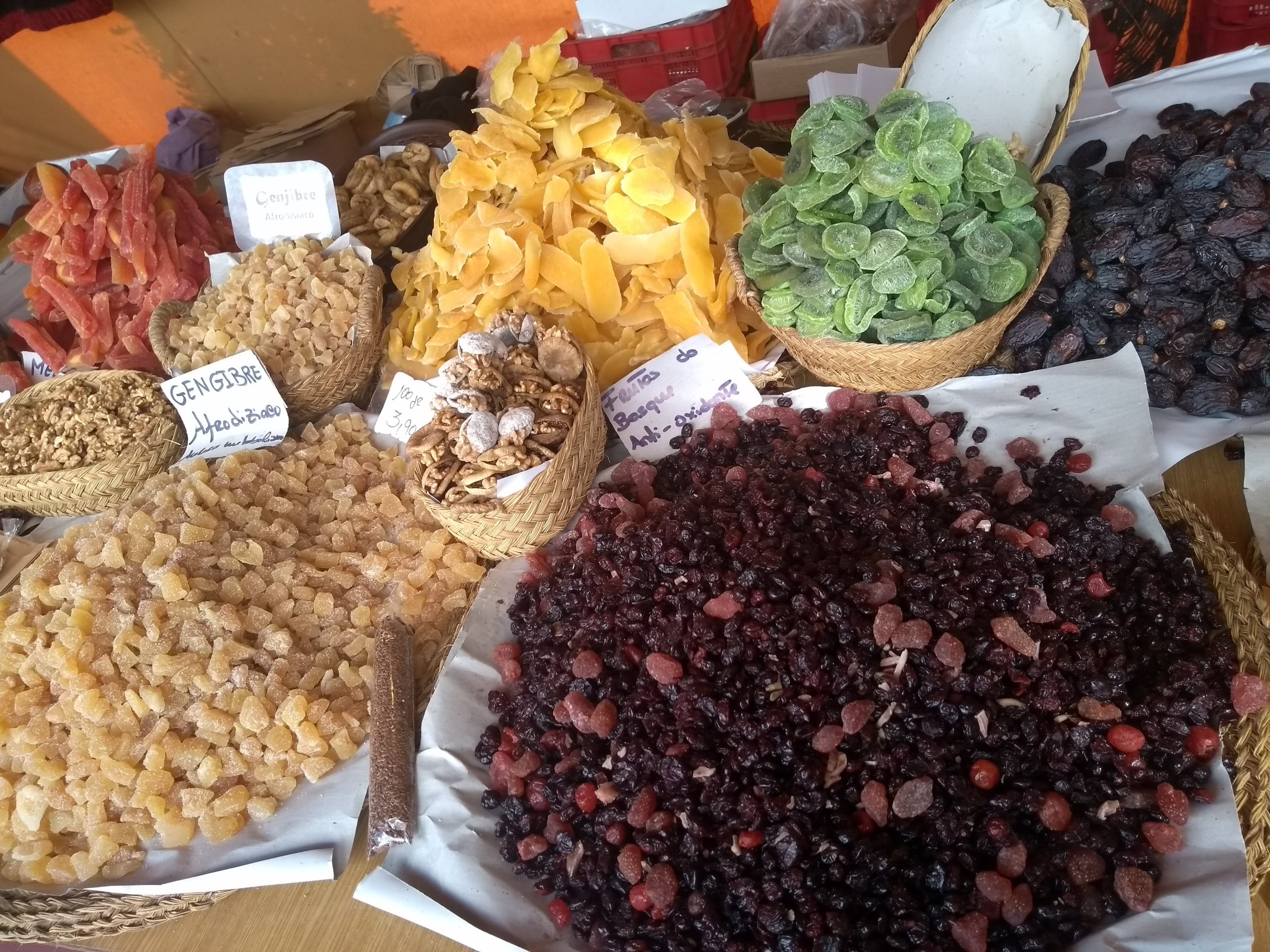 Bancas com sementes, temperos e frutas frescas ou secas chamaram a atenção do público. Tudo vendido a granel.